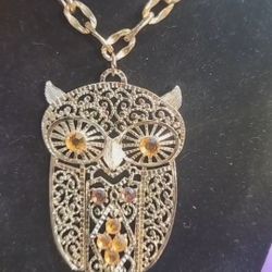 Vintage Gold Crown Enamel Owl Necklace