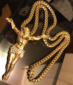 14K Gold Plated Cuban Chain With Large Opened Armed Jesus$250Queens, NY