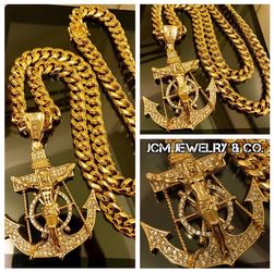 14K Gold Plated Miami Cuban Chain With Anchor Crucifix$275Queens, NY