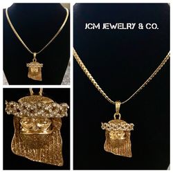 Gold Plated Miami Cuban Chain With Swarovski Crystal Jesus Head$250Queens, NY