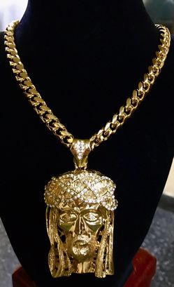 14K Gold Plated Miami Cuban Chain With Swarovski Jesus Piece$200Queens, NY