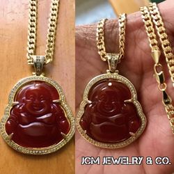 Original Price $250 - 14K Gold Plated Miami Cuban Necklace With Red Happy Buddha Pendant$100Queens, NY