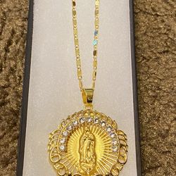 Men’s Or Women’s 14 Kt Gold Plated Virgin Mary Rhinestone Necklace 24 Inch$20Teterboro, NJ