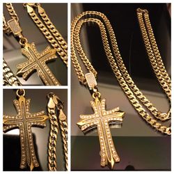14K Gold Plated Cuban Necklace With Swarovski Crystal Cross Pendant$200Queens, NY
