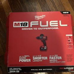Milwaukee M18 Fuel 1/2” Hammer Drill/Driver Kit 2804-22, 1/4” Hex Impact Driver Kit 2853-22 and Red Lithium XC5.0 Battery with Charger $300Bronx, NY