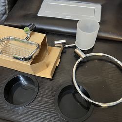 Chrome towel holder, soap dish and frosted glass toothbrush holder$120Brooklyn, NY