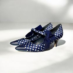 Tory Burch Navy Blue Dotted Side Bow 2” Pointed Toe Kitten Heels Sz 5.5 36$75Teaneck, NJ