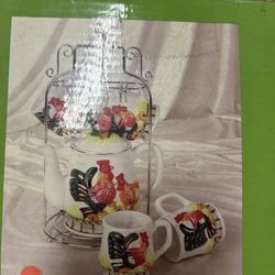 Tea Cup Set with Metal Holder And Kettle $10Montvale, NJ
