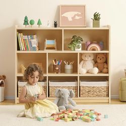 Basics Kids Toy Storage Organizer With 12 Plastic Bins, Natural Wood With Bright Bins, 10.9" D x 33.6" W x 31.1" H$29Woodbridge Township, NJ