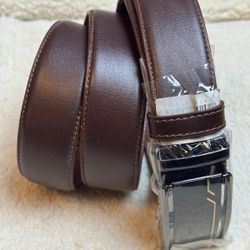 Premium Brown Leather Automatic Ratchet Belt with Modern Buckle $20The Bronx, NY