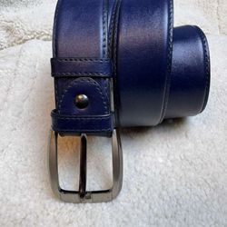 Premium Navy Blue Leather Belt with Polished Metal Buckle $20The Bronx, NY