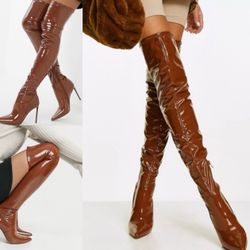 Steve Madden Vanquish Cognac Patent Leather Over the Knee POINTED TOE Boots 8$45Staten Island, NY