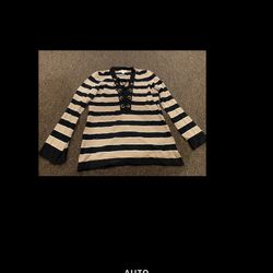 MICHAEL KORS Women's Chain Lace-up Striped V-Neck Sweater Top M EUC! $50Yonkers, NY