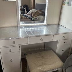 Luxe Vanity Light Up With Mirrored Table And Stool$600La Gurda Arpt, NY