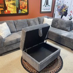 Amazing Sale! Brand New Corduroy Sectional With Free Bonus Storage Ottoman On Sale Now! $798Queens, NY