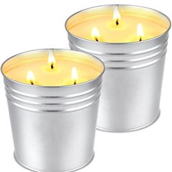 Citronella Candles Outdoor Large, 17oz x 2 Pack 3-Wicks Soy Wax Lemongrass Bucket Candles Set, 200 Hours Burn Time Candles for Garden Home Patio Yard $10Brooklyn, NY