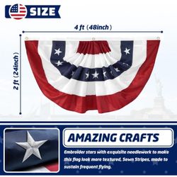 2x4 Ft American Pleated Fan Flag Embroidered Star, American Flag Bunting Patriotic Half Fan Bunting Flag, Bunting Flags Indoor Outdoor for 4th of July$5Brooklyn, NY
