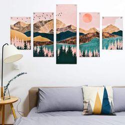 5 Piece Frameless Nature Landscape Tree Picture Art Print, Sunset Forest Painting Prints with 10 Nails$49Scarsdale, NY