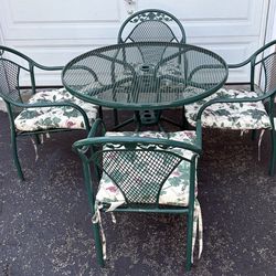 5 Piece Steel Patio Dining Set Outdoor 38in Round Table Green Cushions 4 Chairs$150Madison, NJ