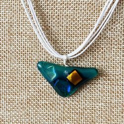 Blue Fused Glass Pendant Necklace With Free Blue Stud $22Queens, NY