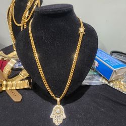 Cuban Link chain And pendant Combo gold Plated $180Mount Vernon, NY