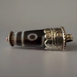 Vintage & Hand crafted Ethnic Tibetan 3 Eye Agate Amulet Pendant with Carved Silver 2”inch tall & 13grams$39Brooklyn, NY