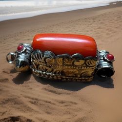 Stunning Hand Carved & Handmade Sherpa Coral Pendant Set In Tibetan Silver 26Grams$29La Gurda Arpt, NY