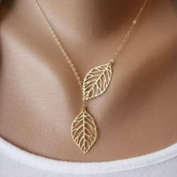 New Double Leaves Women Clavicle Necklace Silver Color Leaf Pendants Necklaces Collares Fashion Jewelry$9Queens, NY