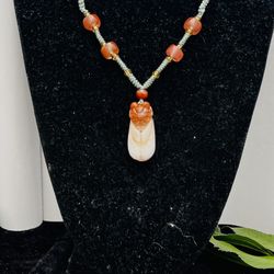Natural Gemstone Red Agate Hand-carved Cicada Pendant Necklace $157Queens, NY