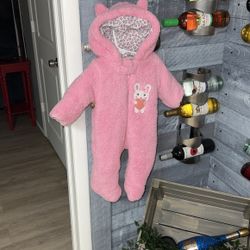 Carter’s Baby Girl Pink Newborn 0-6 Months Snowsuit For Winter Like New With hood And Ears One Peice Sweater Coat Jacket $10La Gurda Arpt, NY