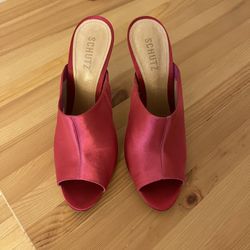 Red Satin 4” Open Toe Shutz Evening Shoes $100Brooklyn, NY