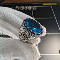925 Silver Ring With Blue Cz Zircon$120New York, NY