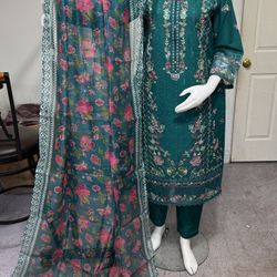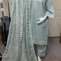 Pakistani Cotton Embroidered Dress Chiffon Dupatta $50Jersey City, NJ