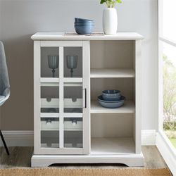 Walker Edison Delaney Modern Farmhouse Sliding Glass Door Bar Cabinet, 36 Inch, Brown White - $195Hackensack, NJ