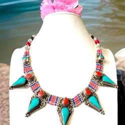 Vintage & Handcrafted Ethnic Indo/Tibet Tribal Style Necklace Inlay Stones Set in Silver 18”inch & 139grams$55Brooklyn, NY