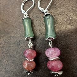 Elegant Green chalcedony and Pink crackle Quartz Dangle Earrings$28Lynbrook, NY
