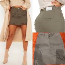 Buzz Jeans Casual Frayed Distressed KHAKI Denim Skirt With Butt Lifting Effect,L$19Staten Island, NY