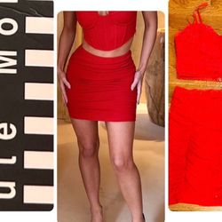 Haute Monde NWT SEXY Swiss dot RED rushed meshed Two pieces Sets Top and Skirt L$29Staten Island, NY
