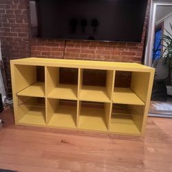 Modern Yellow 8‑Cube Storage Shelf with Gold Wire Baskets$35New York, NY