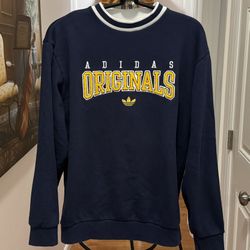 Men's adidas originals SCRIPT CREW Printing Sports Round Neck Navy Sweatshirt M$29Oceanside, NY