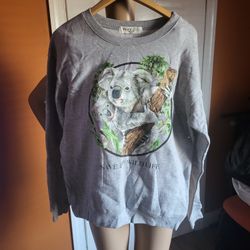 Koala Bear Sweatshirt Womens Medium Save The Wildlife Animals Art Gray Pullover $20Linden, NJ