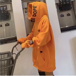 Men’s Hoodie Orange Black Print Word Dope Sweater Sweatshirt $62Palisades Park, NJ