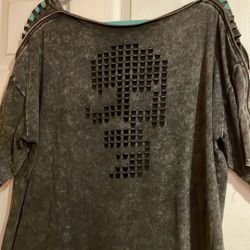 Oversized short sleeve tunic top with skull deign and cold shoulder$20Baldwin, NY