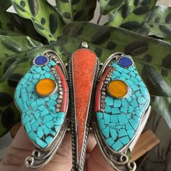 Stunning Handcrafted Colorful Butterfly Theme Pendant inlay stone set in Tibetan sterling silver 3”inch tall🔥$39Queens, NY