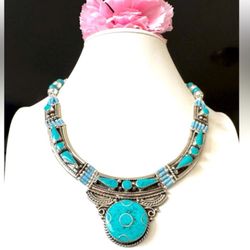 Stunning handcrafted tribal style pendant necklace with turquoise set in Silver 18”inch & 113grams.$59Brooklyn, NY