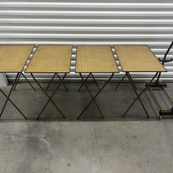 VINTAGE FAUX WICKER RATTAN WOOD BROWN TV TRAYS SET WITH STANDS$75Teaneck, NJ