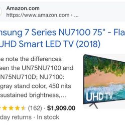 Huge Samsung 75" Class - LED NU7100 Series 2160p - Smart 4K UHD TV with HDR Experience movies in a new way with this 75-inch Samsung television. T$640Yonkers, NY