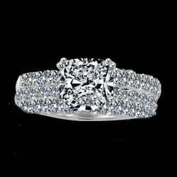 2Ct. (8x8mm) Radiant Cushion cut Trio Wedding ensemble Set Simulated Diamond - Diamond Veneer set Sterling Silver Rhodium Engagement Ring$65New York, NY