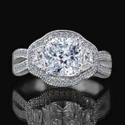 2.5 CT. Cushion Radiant Vintage micro pave halo split shank engagement/wedding three stone Sterling Silver ring Simulated Diamond$50New York, NY