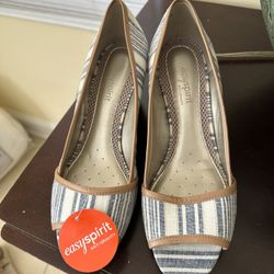 Easy Spirit Brigette wedge pump sandal Blue stripe nautical Brand New Size 8$40Queens, NY